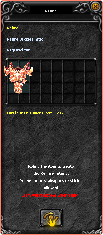 After starting the conversation with him, he would insert an item to create a Refining Stone, remembering that normal items will create a Lower and Excellent items will create a Higher.