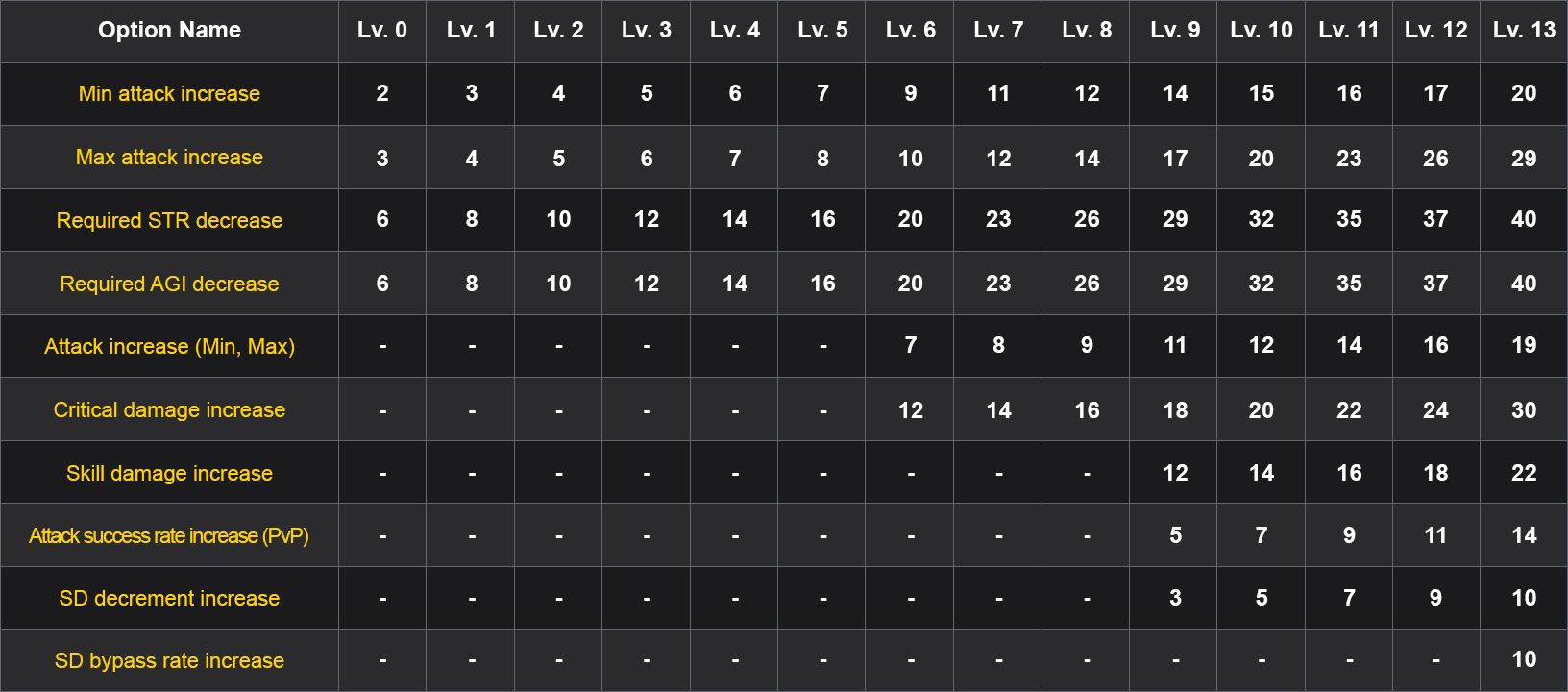 Các tùy chọn Harmony có sẵn cho Vũ khí (Ngoại trừ Gậy phép):