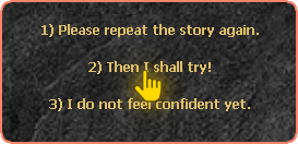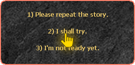 Sau khi nhấp vào NPC Marlon, anh ta sẽ kể cho bạn một câu chuyện về một kho báu huyền thoại bị mất trên lục địa Devilz. Để tiếp tục câu chuyện và nhiệm vụ, chỉ cần chọn các tùy chọn được đánh dấu dưới đây:
