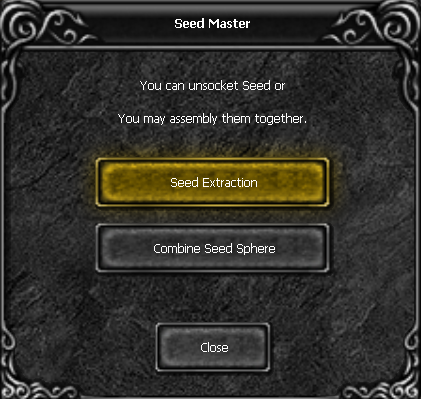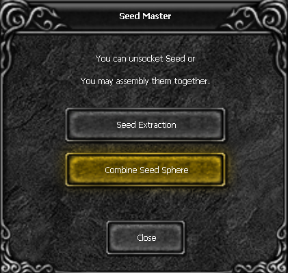 A menu will appear. To extract the Seed, click on the first option called Combine Seed Sphere: