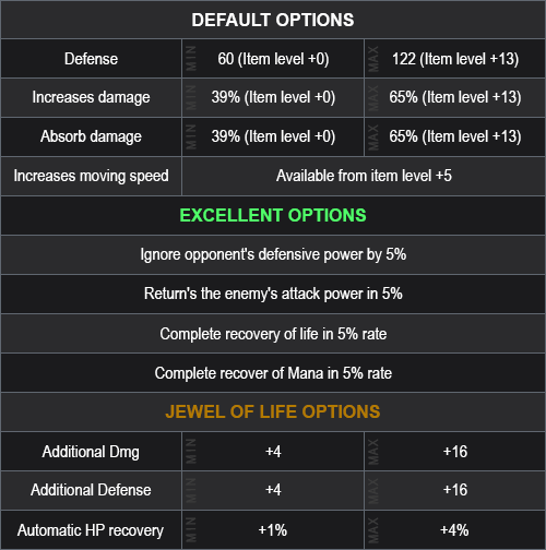 | Wings of Dragon for BK | Wings of Soul for SM | Wings of Spirits for ME | Wings of Darkness for MG | Cape of Lord for DL |